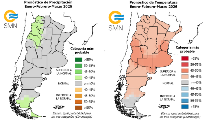 En el pronostico trimestral del Servicio Meteorológico Nacional, se sostiene la tendencia de lluvias normales y temperaturas superiores a lo normal para los próximos meses.